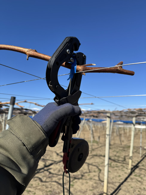 この時期の作業として結果母枝の誘引をしました。