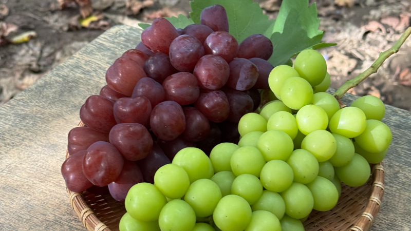 園内では、一番多い時期で10種類前後のぶどうが食べ頃を迎えています。定番の人気種から新品種まで、その日に一番美味しいものを厳選。畑を散策しながら、今この瞬間にしか出会えないお気に入りの一房を見つける宝探しを楽しんでください。