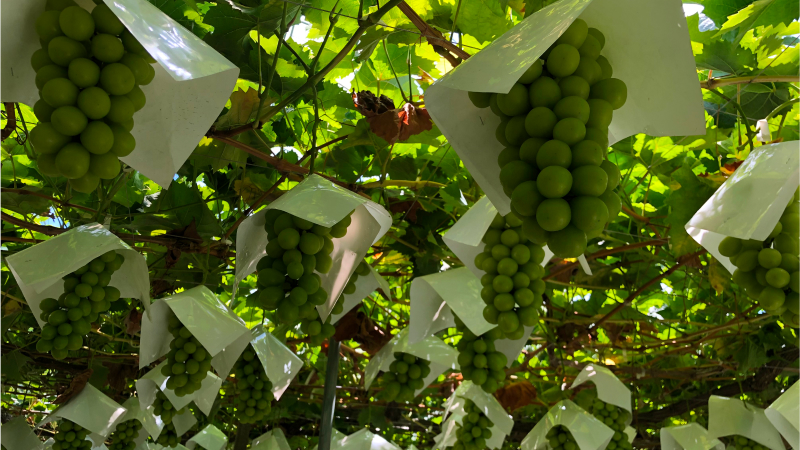 畑は平坦ですが、土の上を歩きます。履き慣れたスニーカーが一番のおすすめです。また、ぶどうの甘い香りに誘われて虫もやってくるので、気になる方は虫除け対策もしておくと安心です。